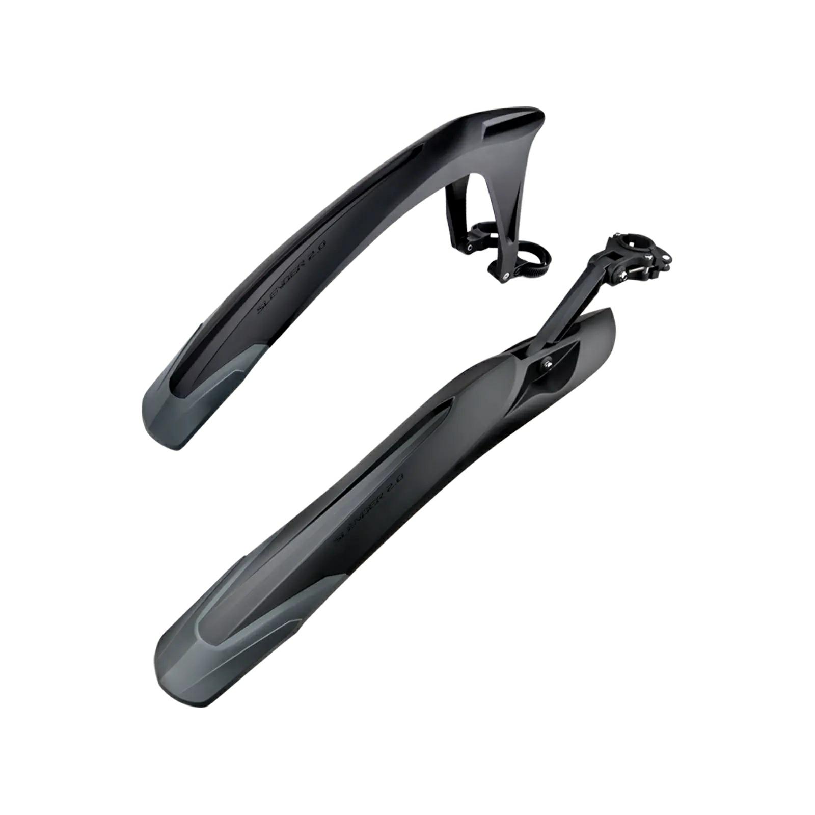 SLENDER 2.0 to błotniki przeznaczone do rowerów MTB, chroniące przed wodą i błotem na mokrym asfalcie i w terenie. Wykonane są z wytrzymałego tworzywa sztucznego. Ich spód jest gładki dla lepszego odprowadzania błota. Ich opływowy kształt skutecznie minimalizuje opór powietrza. Przedni błotnik jest mocowany do widelca za pomocą adapterów i 4 gumowych O-ringów. Tylny błotnik jest montowany za pomocą regulowanego zacisku. Dzięki temu montaż jest szybki i nie wymaga użycia narzędzi.