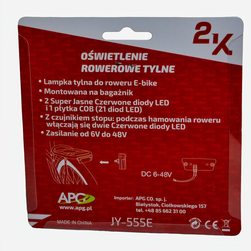 Opis produktu LAMPA TYLNA NA BAGAŻNIK 2K JY-555E E-BIKE