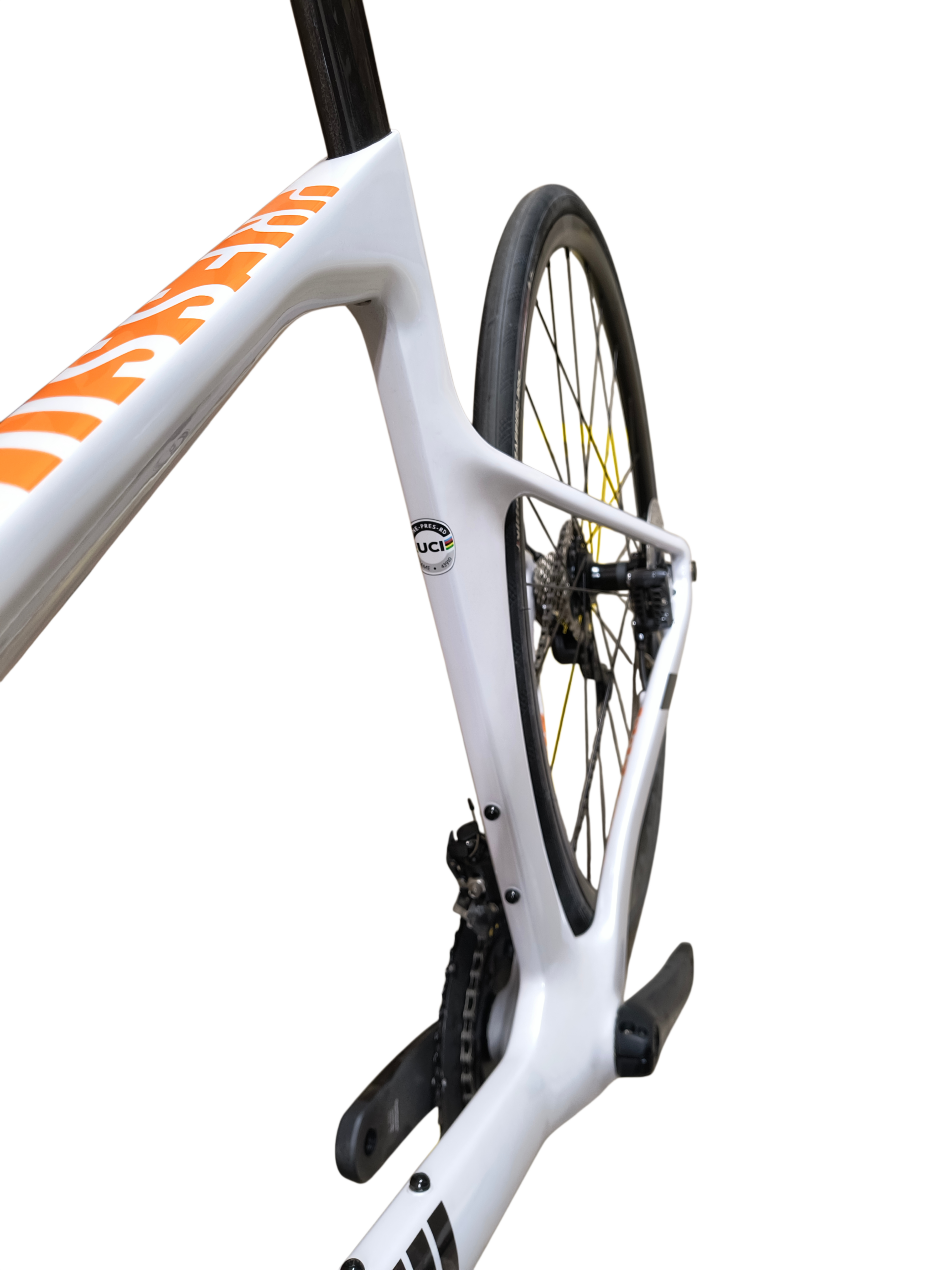 DYNAMICZNA WYŚCIGOWA GEOMETRIA: OŚ PRZELOTOWA I WYBÓR HAMULCA TARCZOWEGO Z CAŁKOWICIE WEWNĘTRZNYM OKABLOWANIEM DECYDUJĄ O CZYSTSZEJ I SZYBSZEJ KONSTRUKCJI GEOMETRII, KTÓRA POZWALA NA NAJBARDZIEJ ZWARTĄ I AERODYNAMICZNĄ POZYCJĘ ROWERZYSTY.